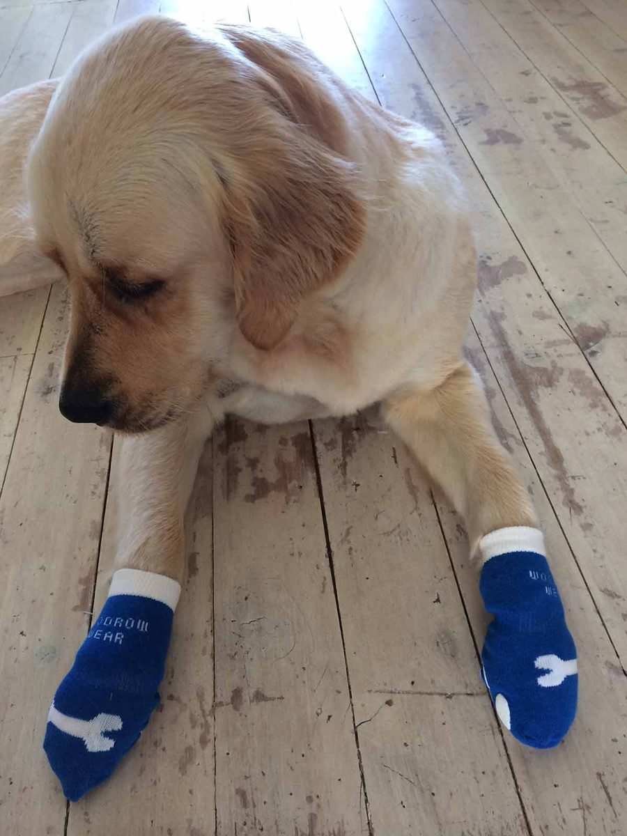 But with high energy comes injuries. In Dozer’s case, regularly cutting his paw pads on oyster shells littered on the shore that he’d sprint across madly, truly believing that he had a real chance of catching that seagull.
