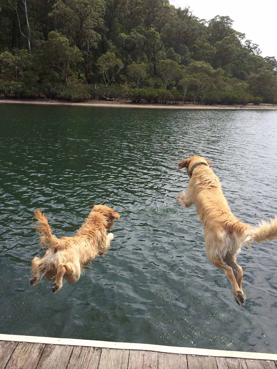 You wouldn’t catch me jumping off jetties into murky waters, but he never hesitates. Those darn fish! He just can’t resist them!
