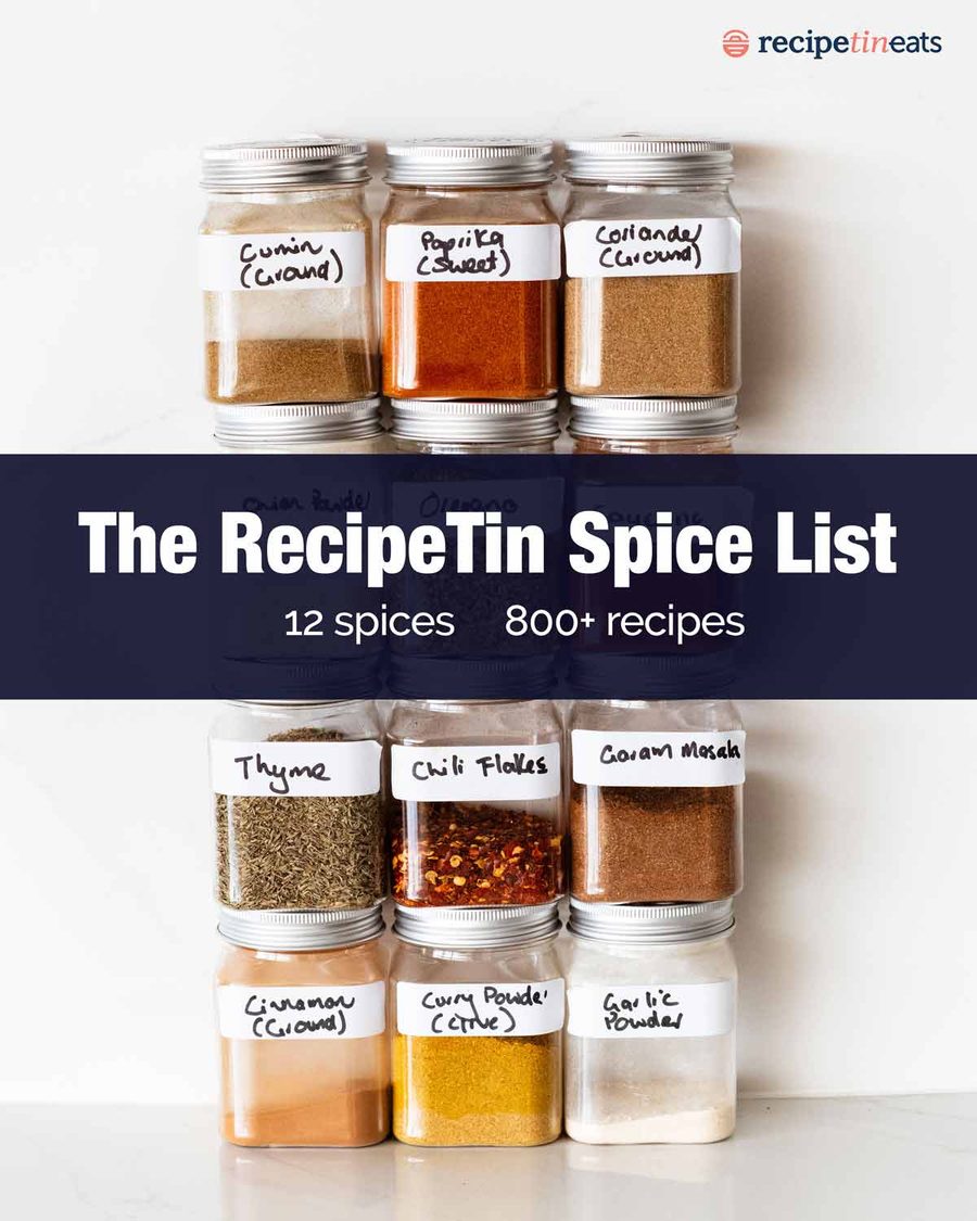 Just before I get to The RecipeTin Spice List, I just want to note that I have an unusually broad range of herbs and spices in my pantry. I feel given what I do, it’s justified – or at least, that’s what I tell myself!