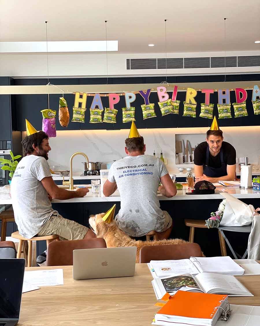 Apparently, my home has gotten quite a reputation with local tradies on site often joining us for lunch – and team birthday celebrations! This was for a popcorn loving team member – edible popcorn bunting!