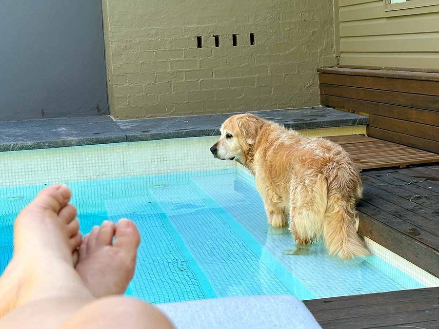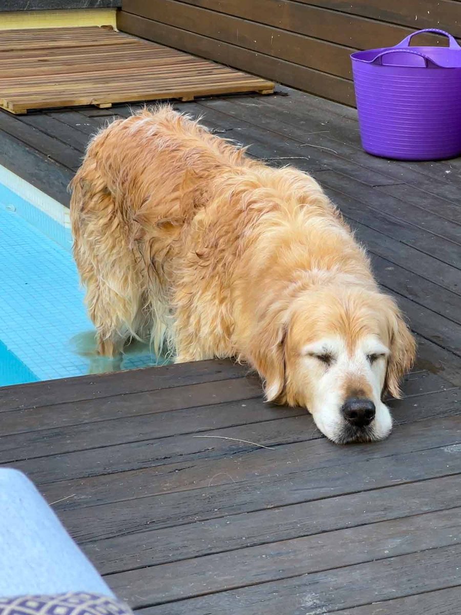Extreme warm weather over the weekend! So Dozer spent most of Sunday afternoon in this position:
