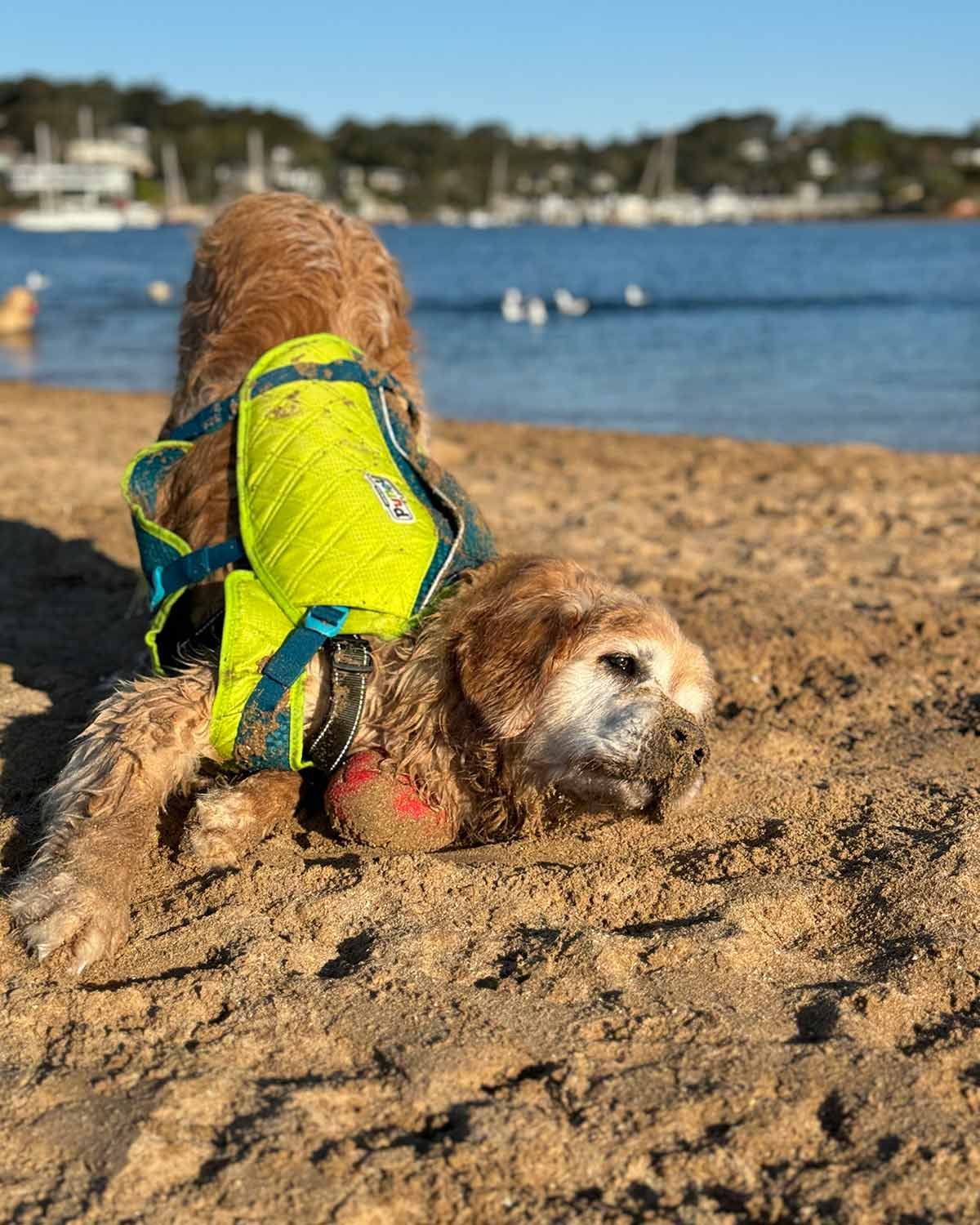 On a serious note: I originally got the High Performance Life Jacket several months ago when Dozer was still mid-rehabilitation, but ended up returning it because I didn’t think it provided enough buoyancy for him. But he’s come such a long away, even being praised by the Magic Dog Doctor for his progress (it’s like getting a gold star at school!), that I decided to give the High Performance Jacket a go again.