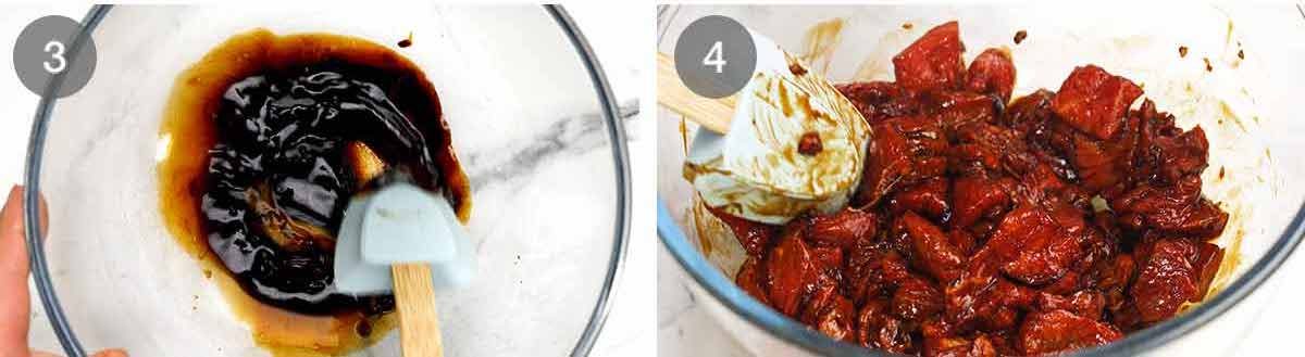 Mix the beef marinade ingredients in a bowl.