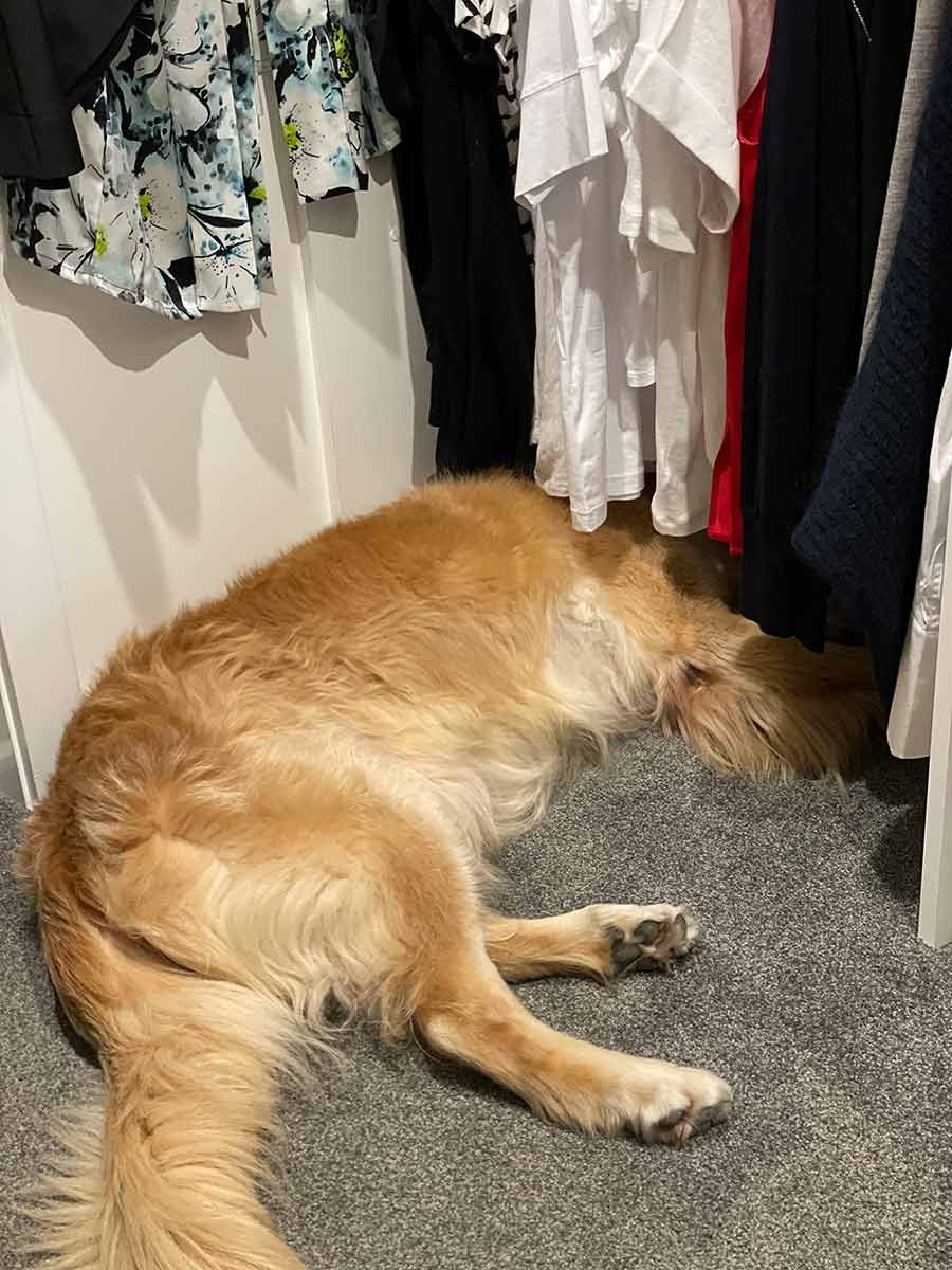 The house I’m renting while my house is being renovated has a walk in robe!!! Dozer’s made himself at home….