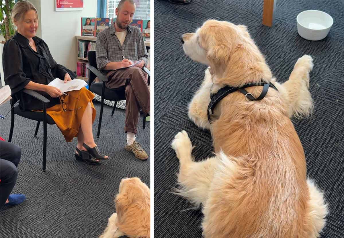 If you are picturing a quiet, calm office, everybody at their desks working earnestly – then huff, huff, huff in comes Dozer with his unmistakable excited panting sound, leaving a trail of golden fur on the grey office carpet and on the clothing of everyone who dared to wear black on that day – you’re just scratching the surface of the reality that is Dozer in an office.