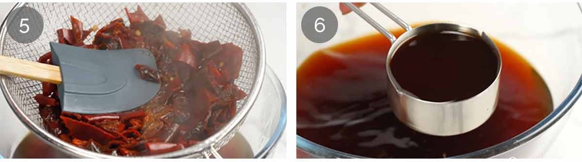 Dried chillies are tough so we need to soak to soften before blitzing into an Adobo paste.