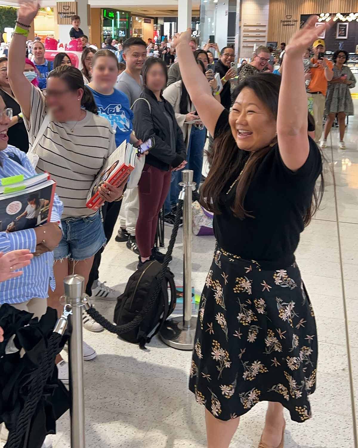 The main events for the book tour were a series of public signings that were hosted at Westfield shopping centres in Sydney, Melbourne, Adelaide, Brisbane and Canberra. Partnering with a large organisation like Westfield made things so much easier for us because they handled all the set up logistics for the signing area, provided security (“it’s sooo unnecessary!” I kept insisting) and staff to assist with line management.