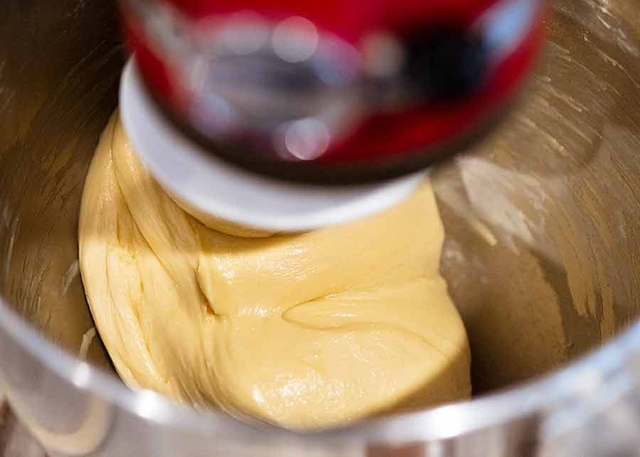 Heads up: Yes really, the dough takes 35 minutes to mix using a stand mixer. It will look like a sticky, unusable paste for the first 25 minutes, and even once ready it will still be a very, very soft dough. Click here to jump to the section explaining why the dough is soft.