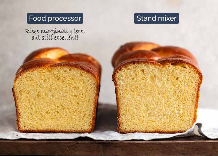 Don’t have a stand mixer? Don’t worry! This can be made using a food processor in 5 minutes flat. It rises about 10% less but the results are still exceptional!