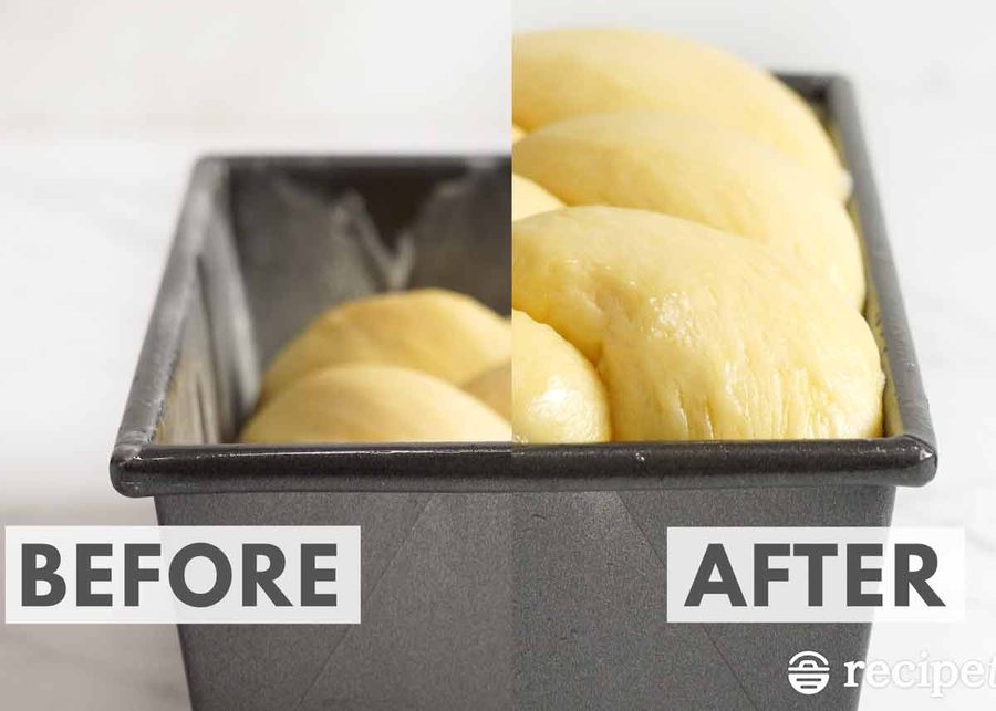 - Loaf pan: Spray a 21.5 x11cm (8.5 x 4.3") loaf pan well coated with oil spray, then place the dough in. Lightly spray cling wrap with oil, then cover the dough.