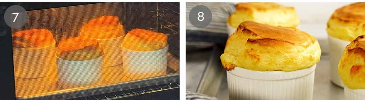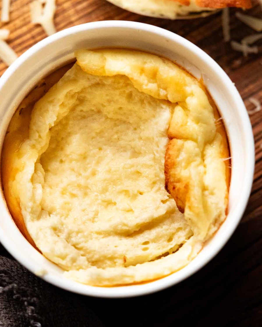 Bake – Place the ramekins on a tray and bake for 20 minutes until tall and golden, but it jiggles if you give the ramekin a gentle shake. Do not open the oven door, the sudden drop in heat will make them sink. So no peeking! 🫣