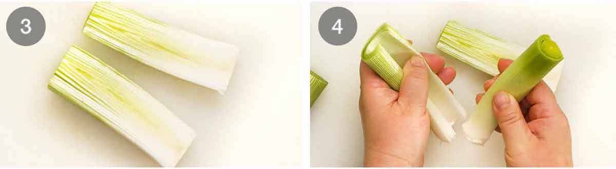 Cut the leek in half lengthways.