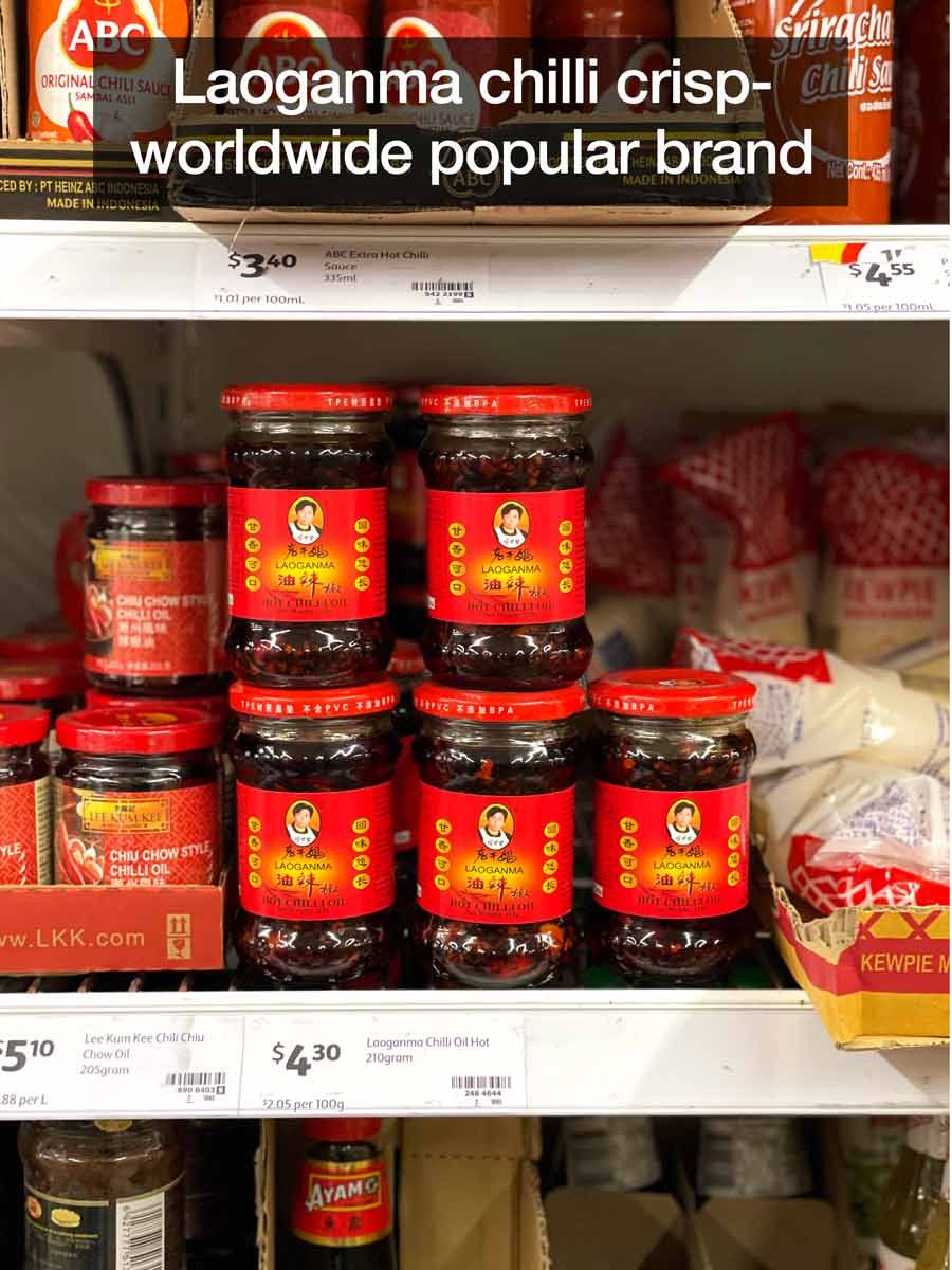 - CHECK the spiciness of your chilli crisp – taste it!! Laoganma is not actually that spicy (most store bought brands I've used are similar) and the quantity used is based on that brand. If yours is very spicy, start with less and add more later.