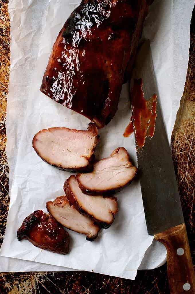 I used a 2lb boneless pork loin cut lengthwise into 2. Marinated overnight. I added a tablespoon of Bang Bang (Members Mark) seasoning to the marinade. Added the extra honey to marinade when heating. This came out so perfect. I slow baked at 320f for about 2 and half hours, basting every 30 minutes. Turned heat up to 375 for last 30 minutes, nice char. Turned them over and broiled on high for 15 minutes. Voila, perfection. The basting and basting is essential and when resting in the pan, I basted again with pan juices. Thank you as always I believe you are one of the smartest cooks ever.
