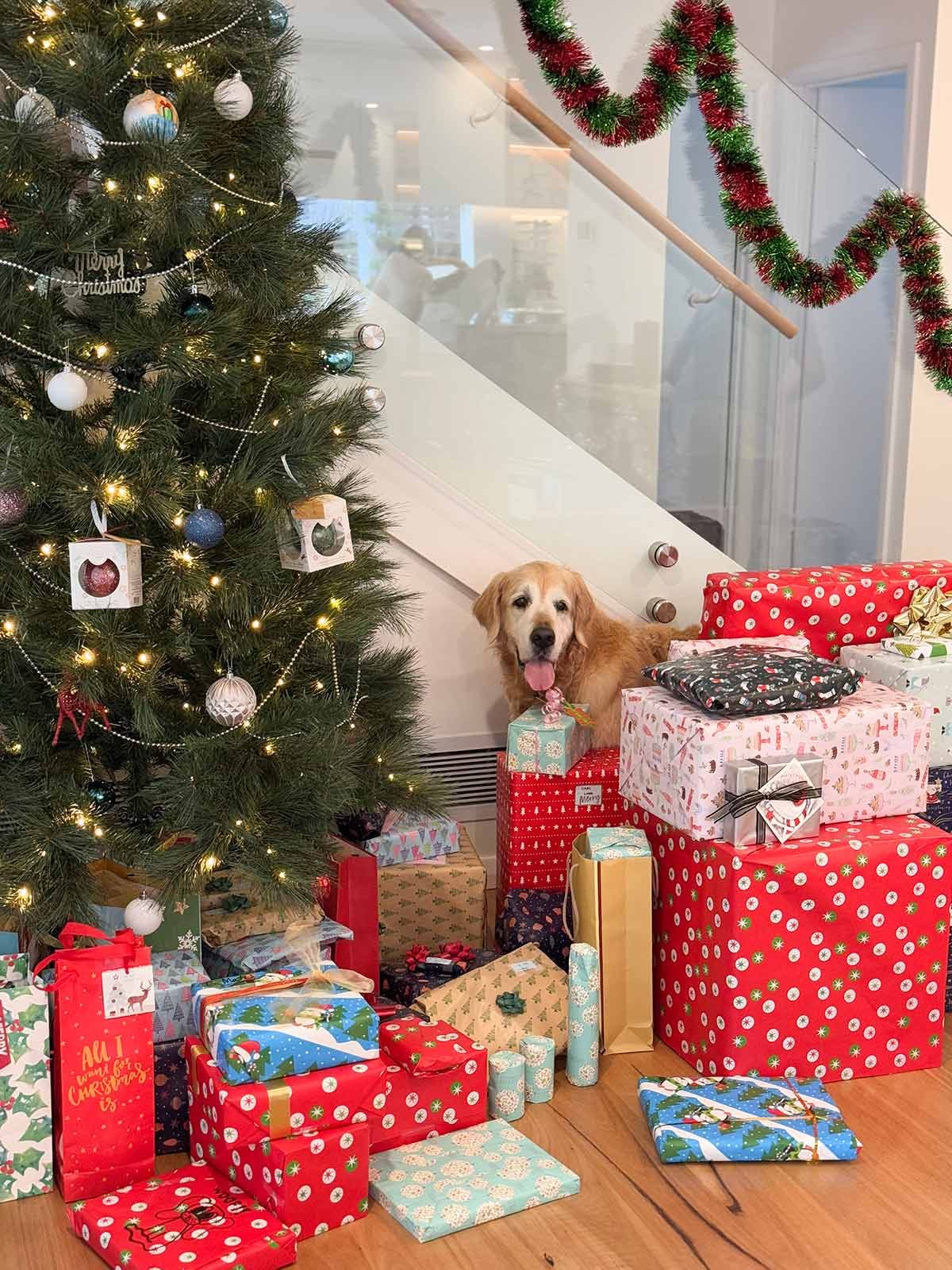 We celebrated Christmas last weekend as it was the first weekend everybody was back in Sydney! As you might imagine, there was a fair number of food gifts (our entire extended family is very into food!) so Dozer spent a fair amount of time snuffling around the pile of presents.
