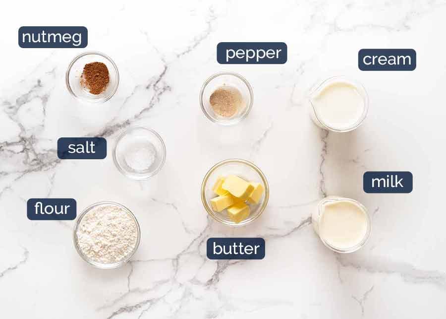 Nutmeg and pepper – A touch of spicing for our béchamel. A dash of nutmeg complements a béchamel beautifully.