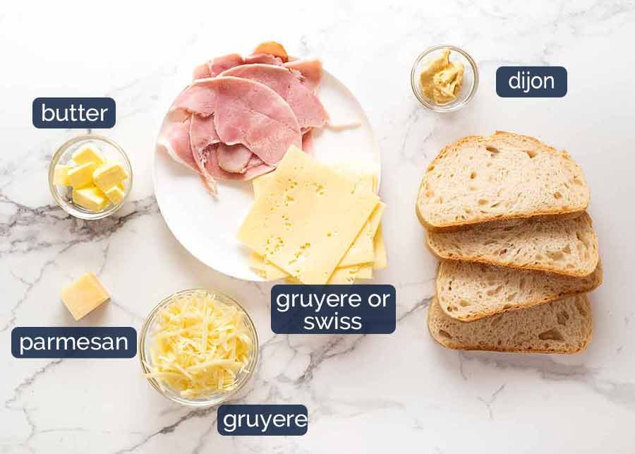 Here’s what you need to make Croque Monsieur. Yes, it’s more than just bread, ham and cheese – see my opening statements! 😂
