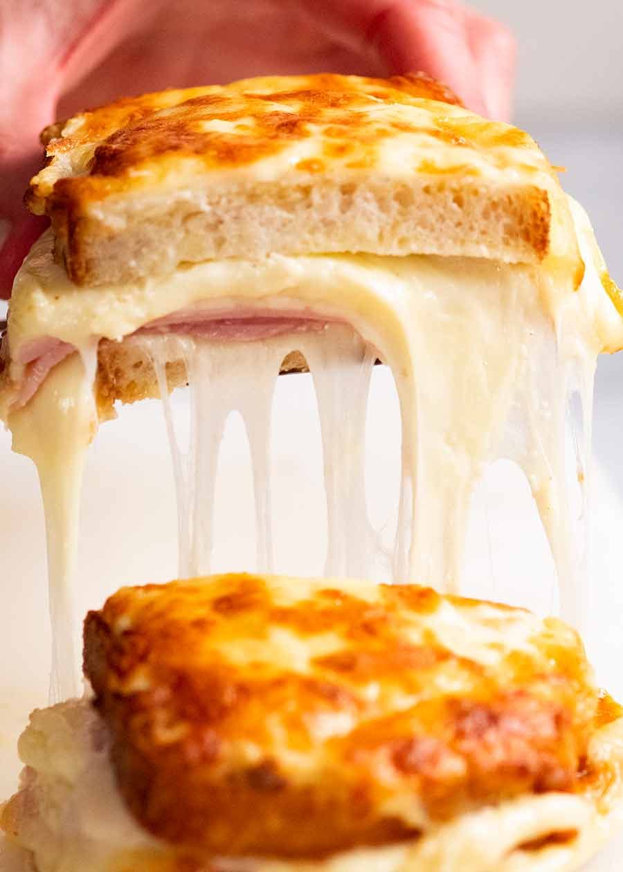 Croque Monsieur is a hot ham and cheese sandwich, done the French way! Béchamel sauce, ham, cheese and a smear of Dijon mustard, grilled until it’s oozing, this sandwich is the king of grilled cheeses!