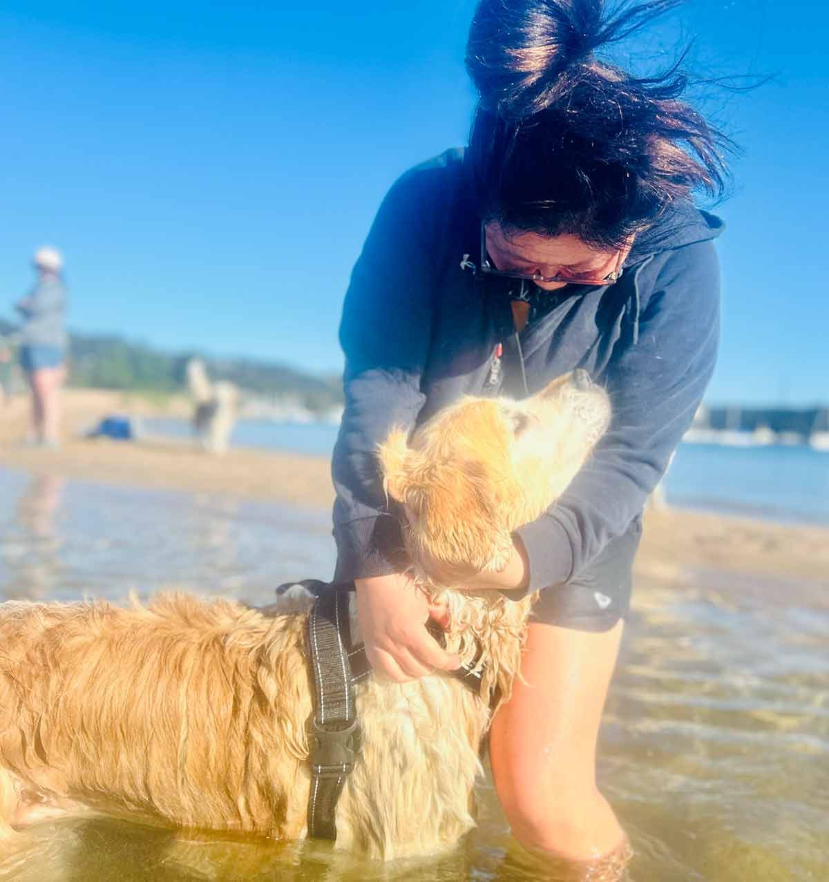 I know this looks like my friend captured a heartwarming moment as Dozer was gazing up at me adoringly….but the truth is a flock of birds was flying overhead.😆