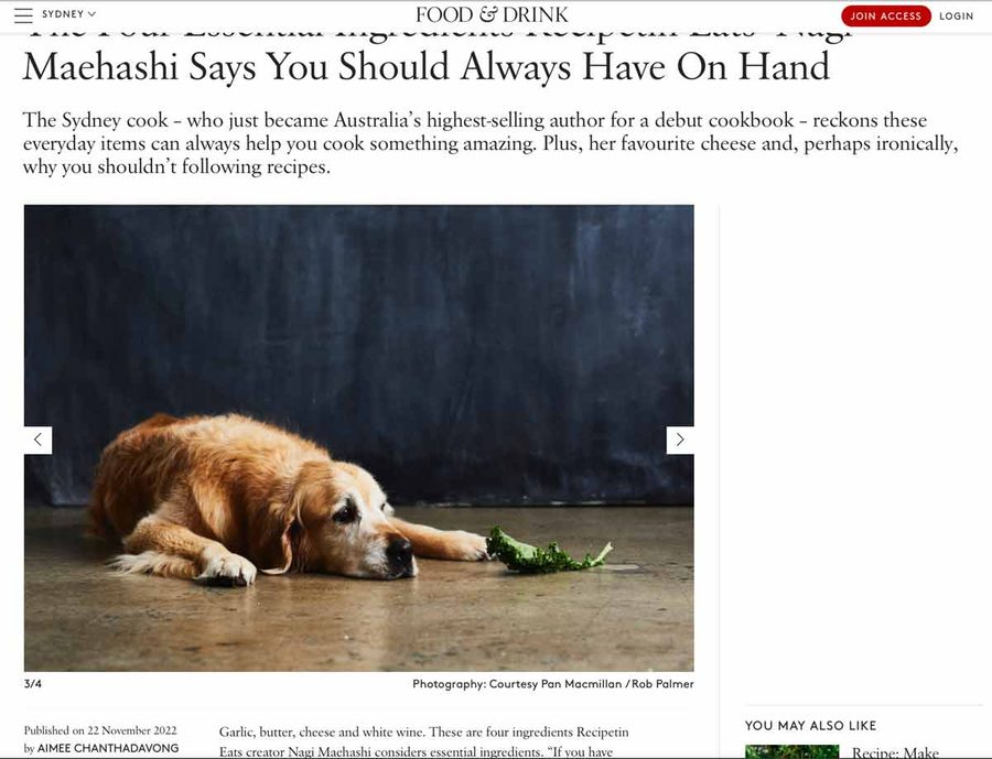 Every time the publicity gurus at my publisher send through a link to an article about my cookbook, the first thing I search for and fawn over are photos of Dozer.