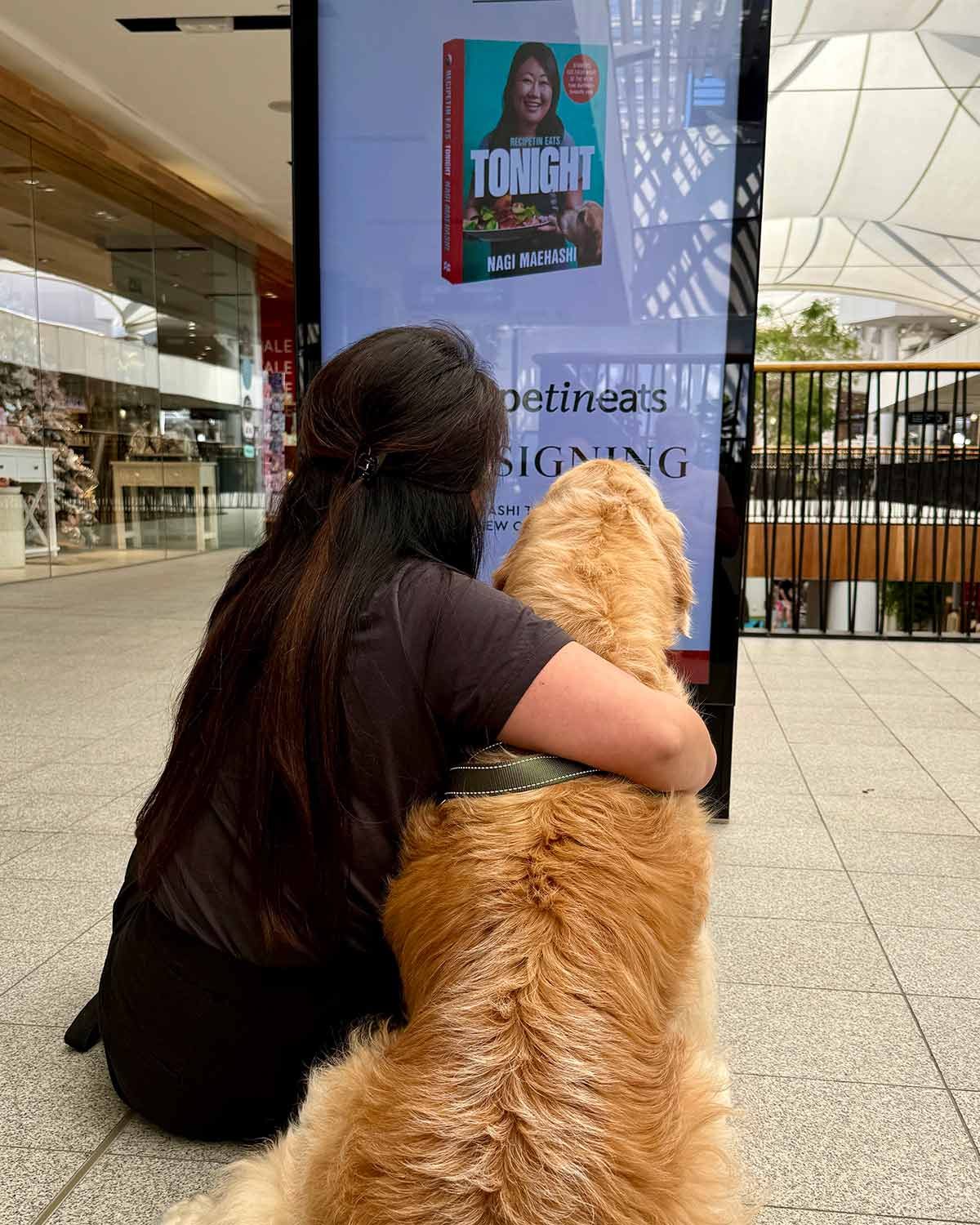 If you told me 10 years ago I’d be sitting on the floor of a shopping centre with a dog watching a lightwall until the advert for my book signing came up, I’d have looked at you like I’m crazy.