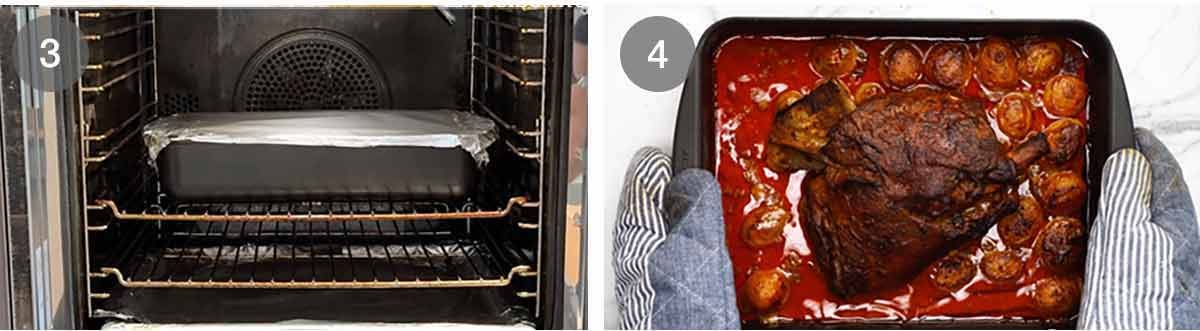 Sauce adjustments – If you don’t have enough sauce when you remove the foil, just add water before browning the lamb. If there’s too much / too thin, just pop the pan back into the oven without the lamb (once browned). It’s so easy to adjust!