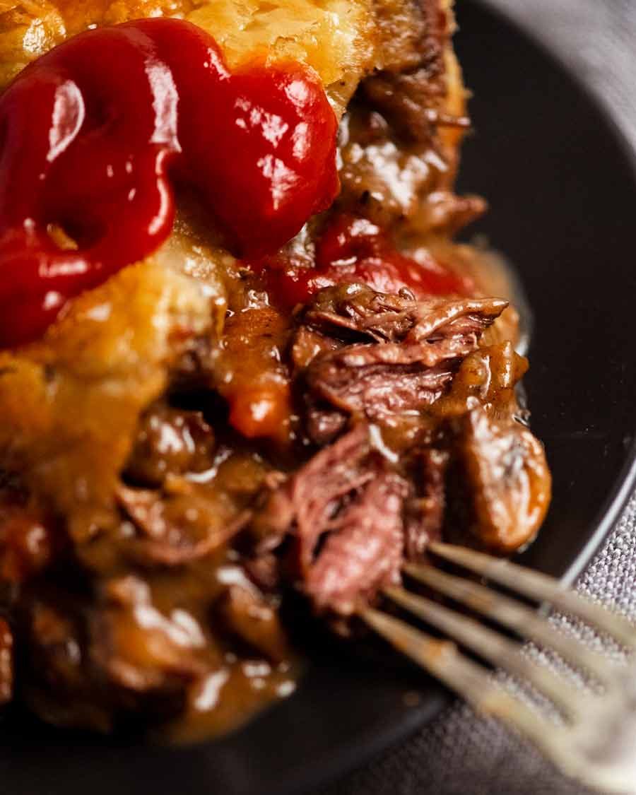 It also gives the sauce the deep, dark brown colour which is part of the appeal of this filling. Nobody wants a meat pie with a pale filling!