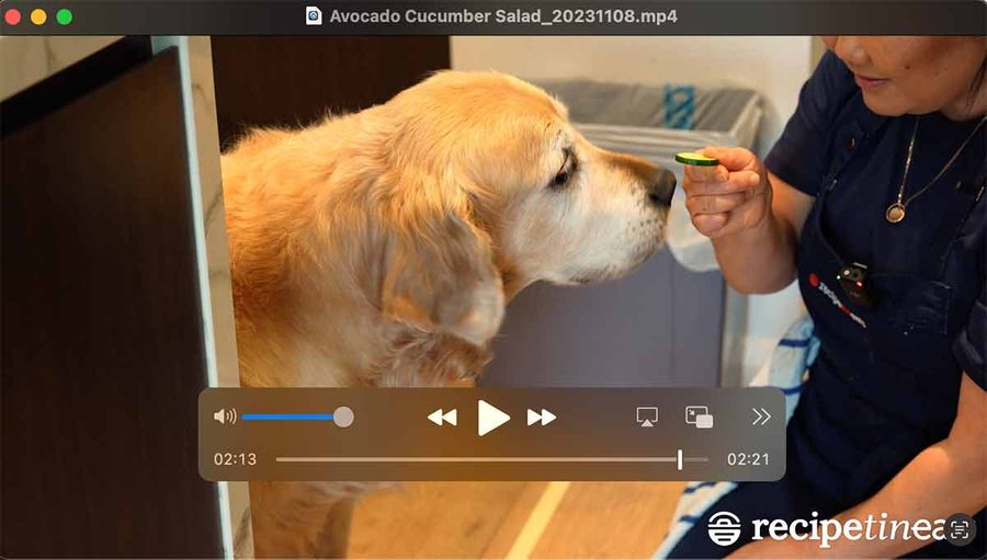 Today’s recipe is so simple there’s more Dozer than avocado salad in the recipe video. The right ratio, as far as I’m concerned!