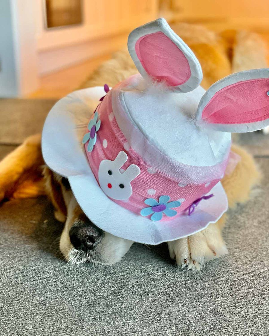 Dozer, avoiding eye content, ‘do you think she’ll see me. Not another Easter hat parade! Pleazzzzzze no!’