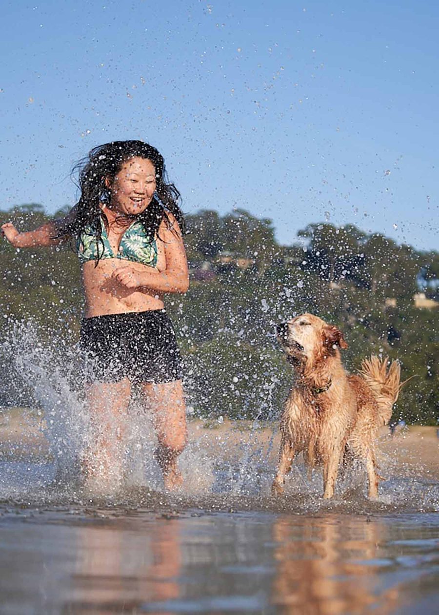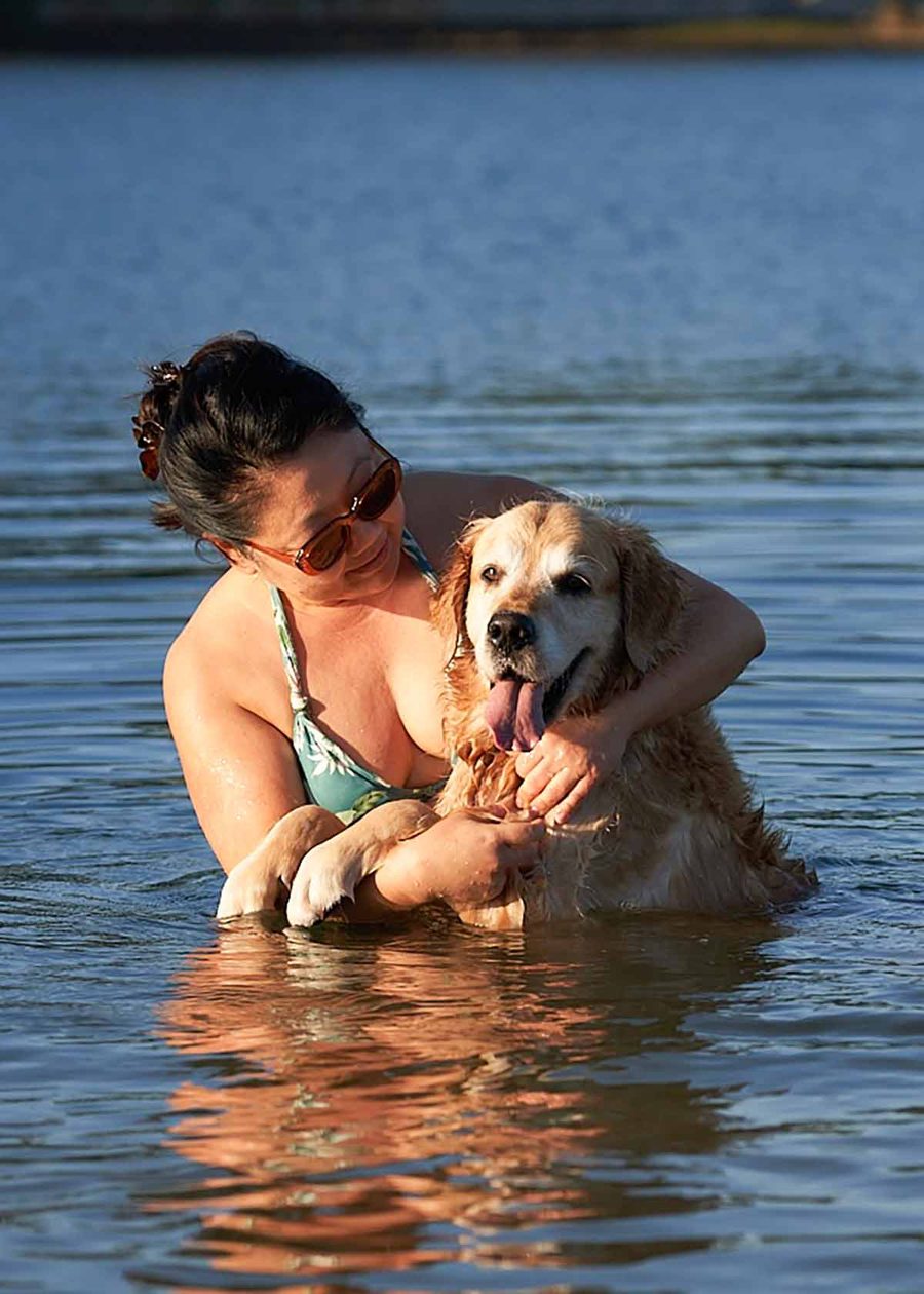 Yesterday marked one month since Dozer left us and it felt like the right time to say goodbye to him at Bayview dog beach. I placed a magnolia flower from our garden on the water and watched it drift away, then scattered his ashes into the sea.
