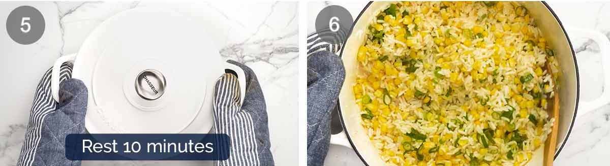 If using fresh corn, it won’t cook through in this time which is fine because it will steam cook with the rice.