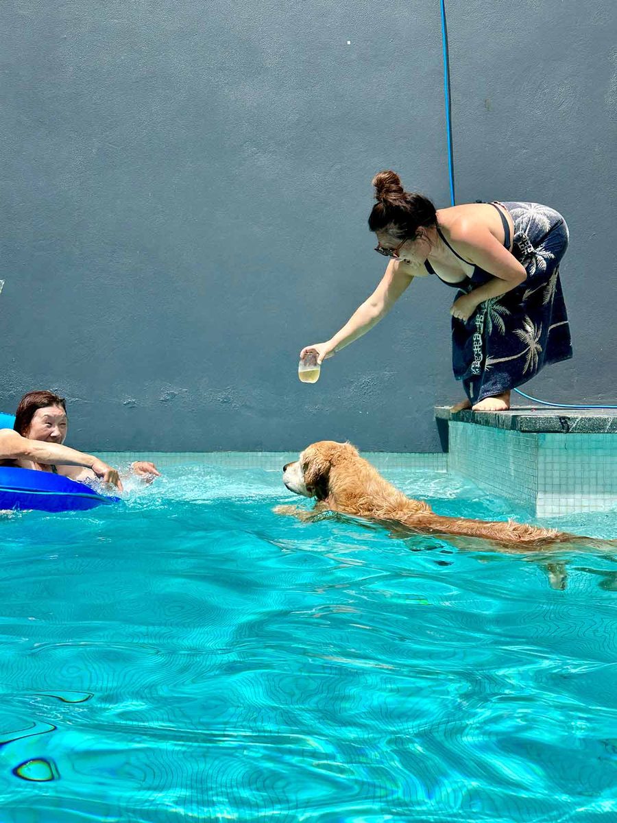 Shot of the year? Mum swimming towards champagne and Dozer swimming towards mum!