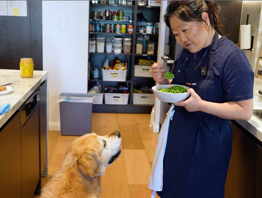 Good morning from Atlanta, GA made the chicken in mustard sauce, delish! Last night the garlic peas, equally delish. I have added mint and thin prosciutto to the batch for the holidays! Dozer looking good, Kota says woof, woof from across the pond. And wistfully looking at the kitchen counter, haha. She ain’t starving in this household!!!