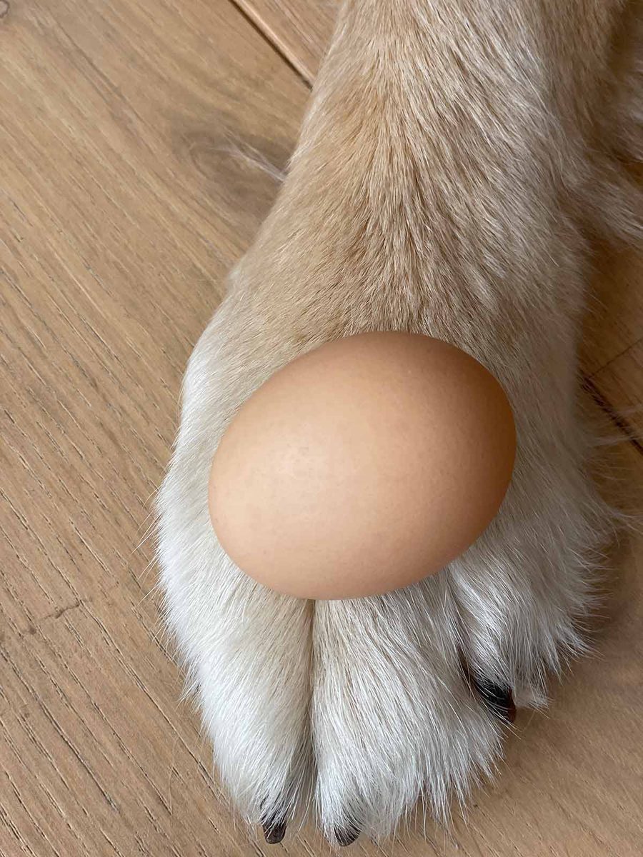 Size context: large eggs and jumbo paws.