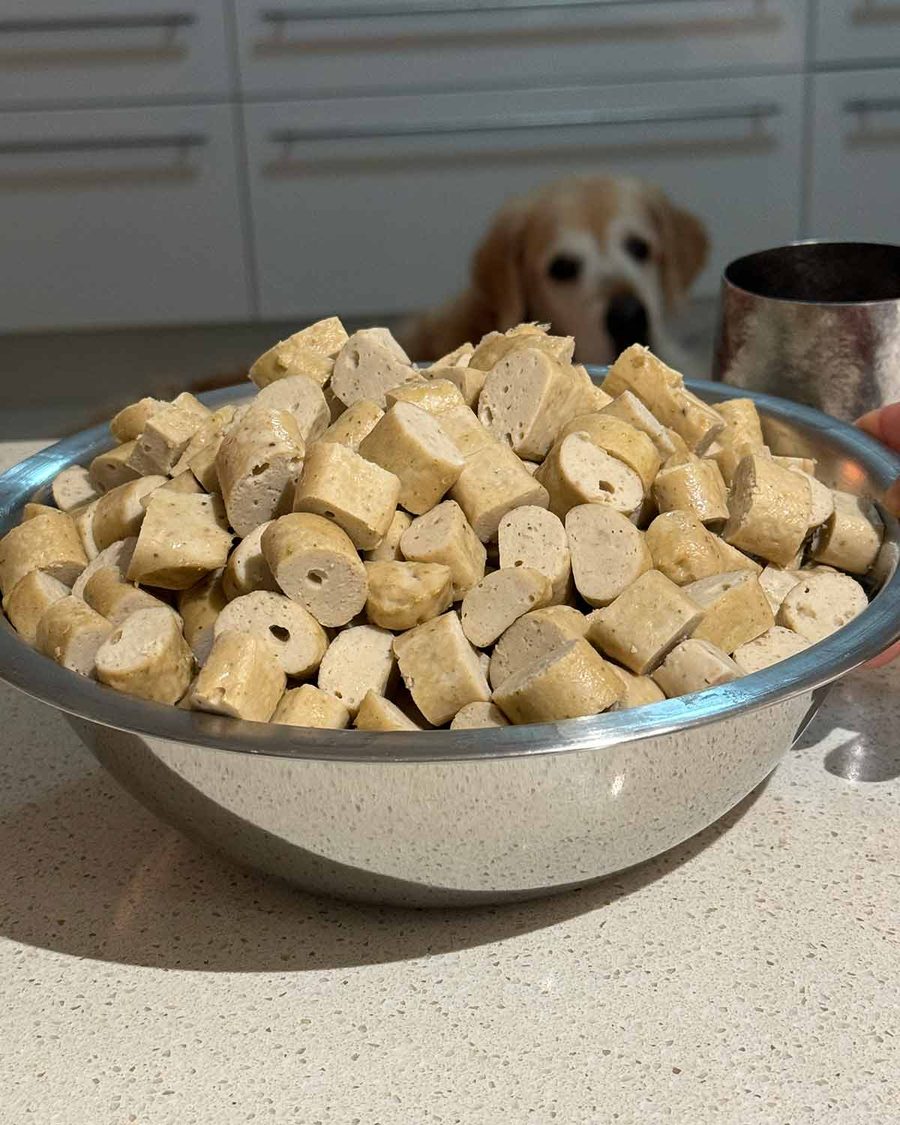 The ability to make big-batch food is important for me because Dozer eats a LOT!! 1 kg / 2 lb a day, to be exact. What you see above is just 2 1/2 days worth of food for him!!