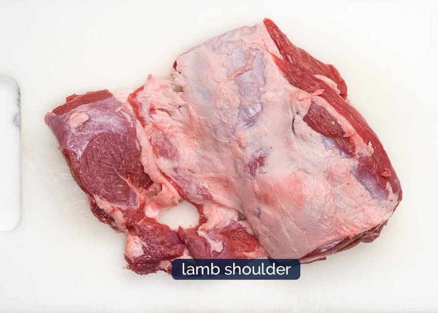 Lamb shoulder is the best cut because it becomes meltingly tender with hours of slow cooking to break down the tough fibres. We cut the meat into large cubes else they will cook too quickly, before the sauce has had sufficient time to develop flavour.