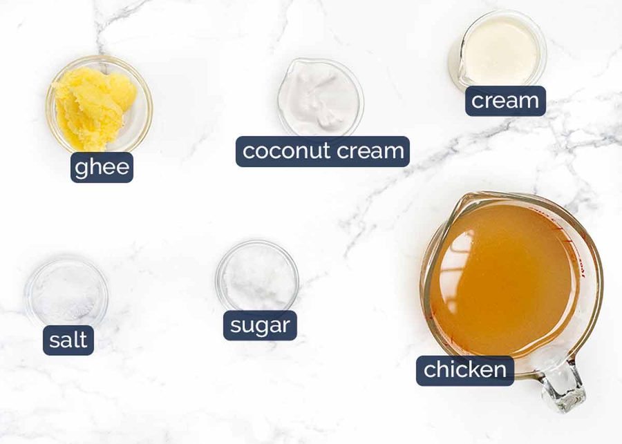 Coconut cream – Thicker and richer than coconut milk! Full fat please. Low fat doesn’t have nearly as much coconut flavour.