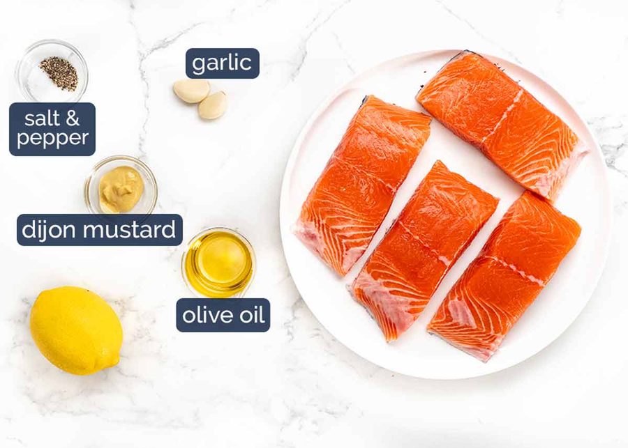 Dijon mustard – This thickens the marinade into a paste that sticks to the salmon as well as adding a little mustard tang. You can’t really taste it, to be honest.