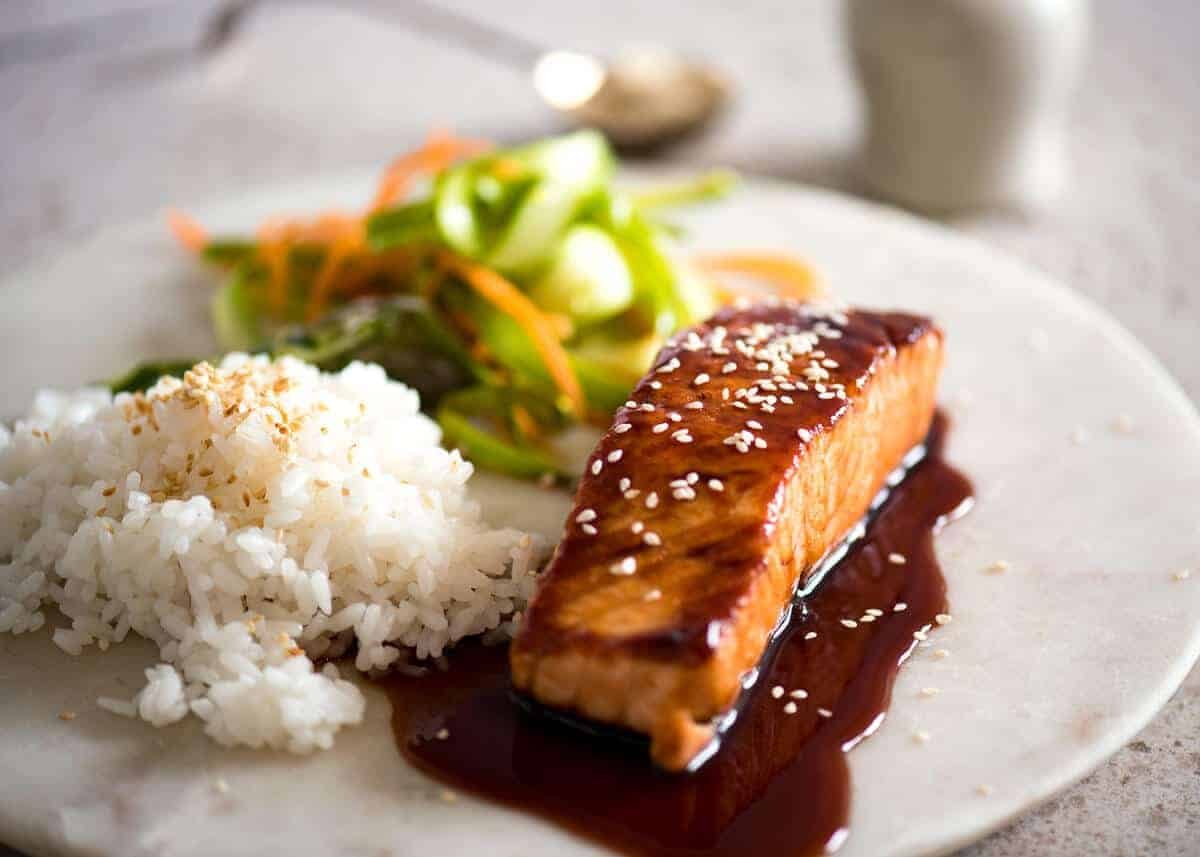 Im not a salmon lover, too fishy(even soaking in milk) and alas this didnt change my mind about salmon. The glaze was very tasty. Husband loved it but he loves salmon😄. Thankyou for sharing anyway😄 it was an attempt to get me to eat salmon other than in a tin or marinated overnight in miso, soy and a touch of sesame oil and a few other things i cant remember but alas hysband will have to make do with my one method of cooking salmon (it kills the fishy flavour completely)