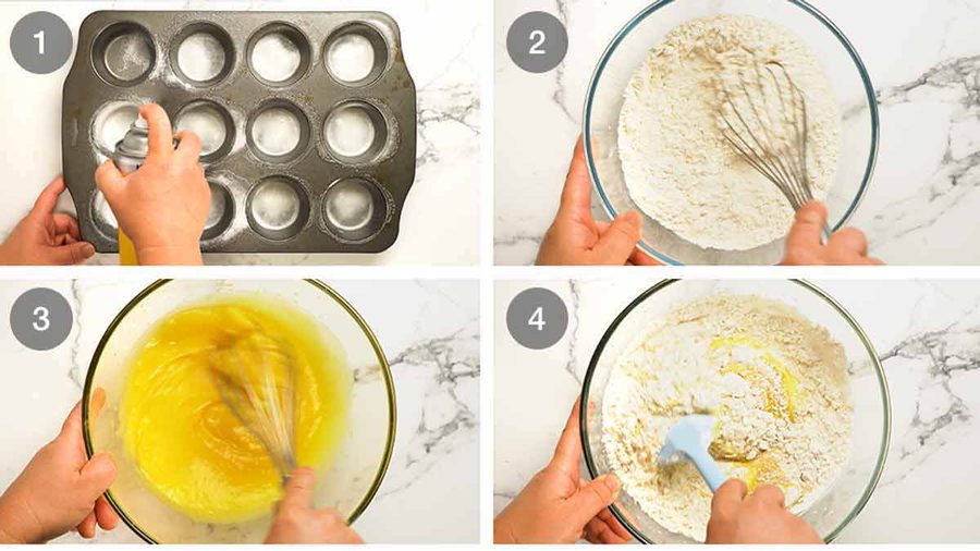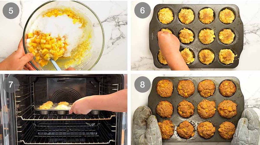 - Preheat oven to 220°C/425°F (200°C fan-forced). Spray a muffin tin with canola oil or grease well with butter. (Note 5)