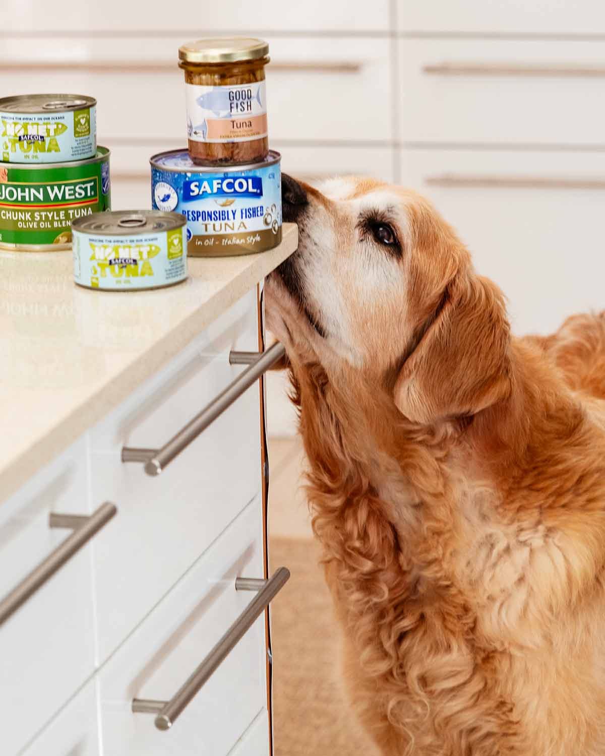 You’d swear they were big hunks of beef, the way he was eyeing off those (un-opened) cans. 😂
