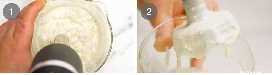 I find it easiest to use a stick blender for this dressing. There’s not enough volume to use a regular size food processor though a small one would work. A blender is a bit of a pain for small volume creamy dressings, I find. Too hard to scrap it all out.