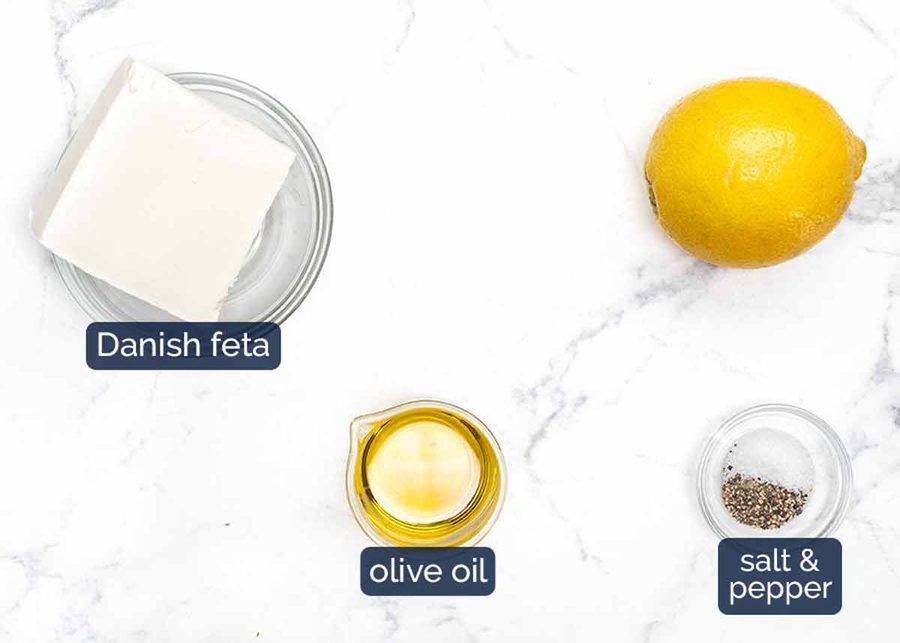 - 100g/ 3.5 oz Danish feta (Note 2)