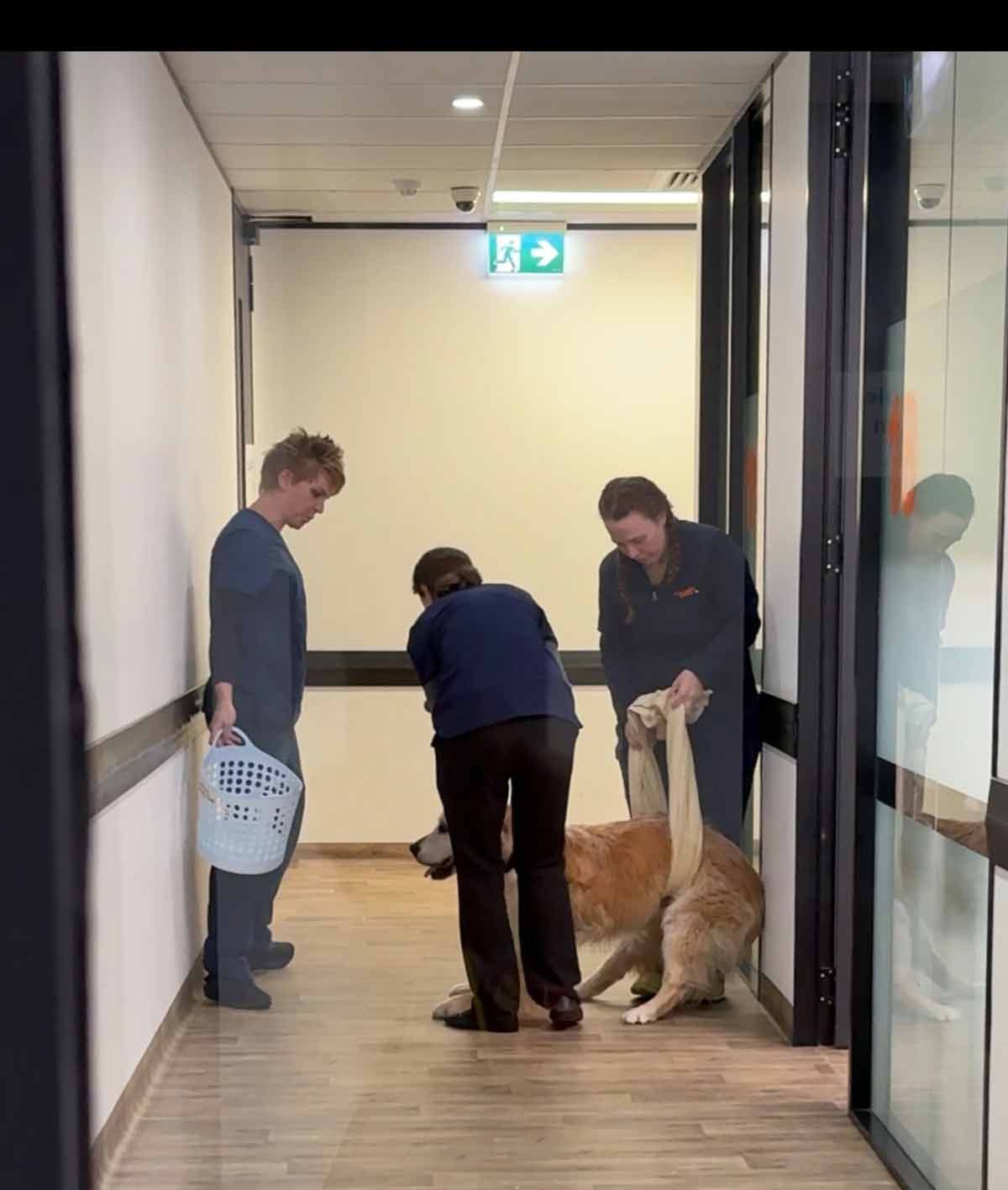 Then all of a sudden on Day 5 it transformed into acute gastro. We are talking, explosive. We are talking – battening down the hatches to prepare the house for the inevitable storm that is Dozer going through mega-gastro. Waterproof floor coverings “everywhere”, cordoning off “Dozer-proof” areas. Rubber gloves. Carpet cleaner. Industrial laundry liquid. Baby wipes galore. Freaking out if Dozer parks himself anywhere in the house not protected.