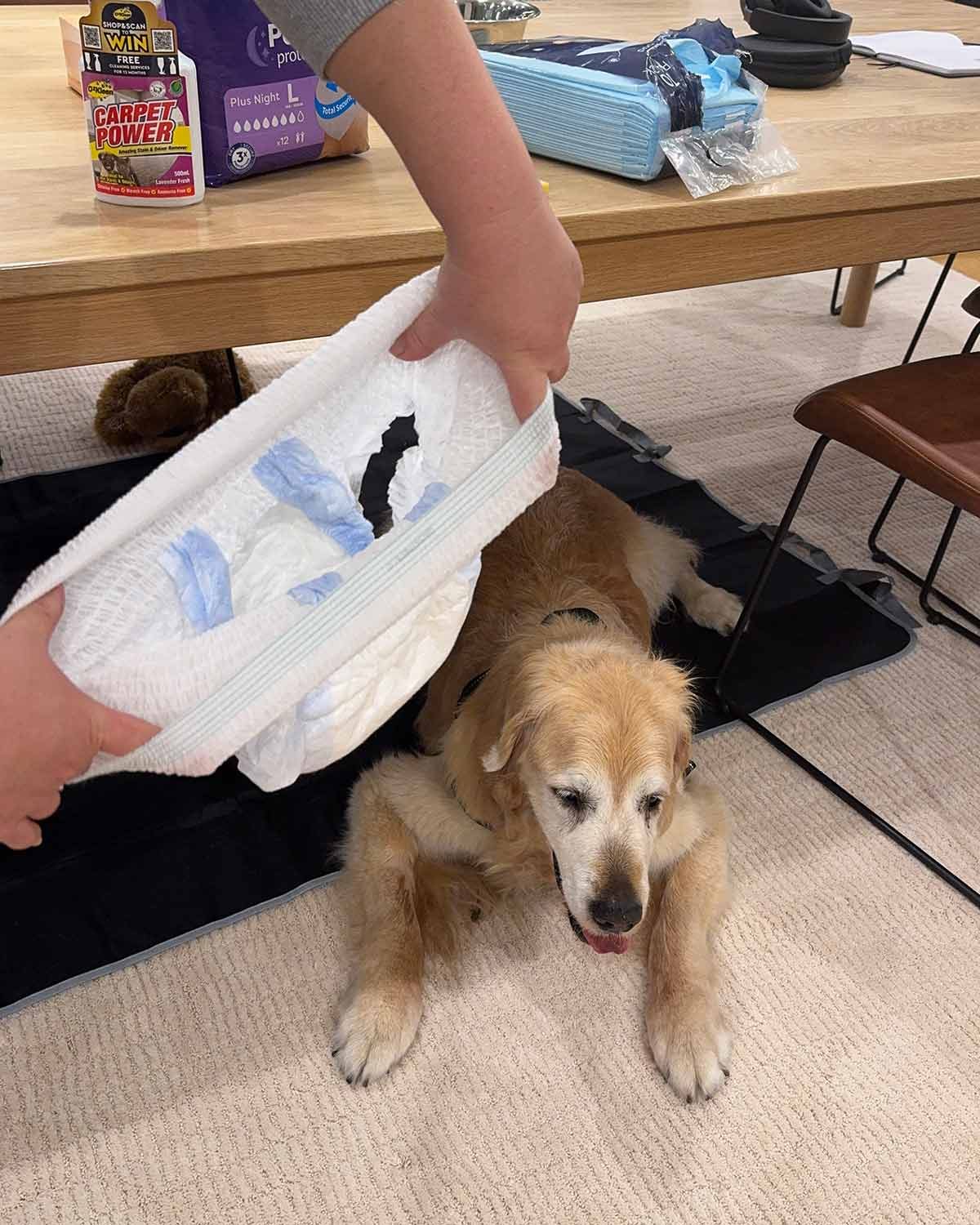 BTW, there are actually such things as dog nappies apparently, but I needed an immediate solution!
