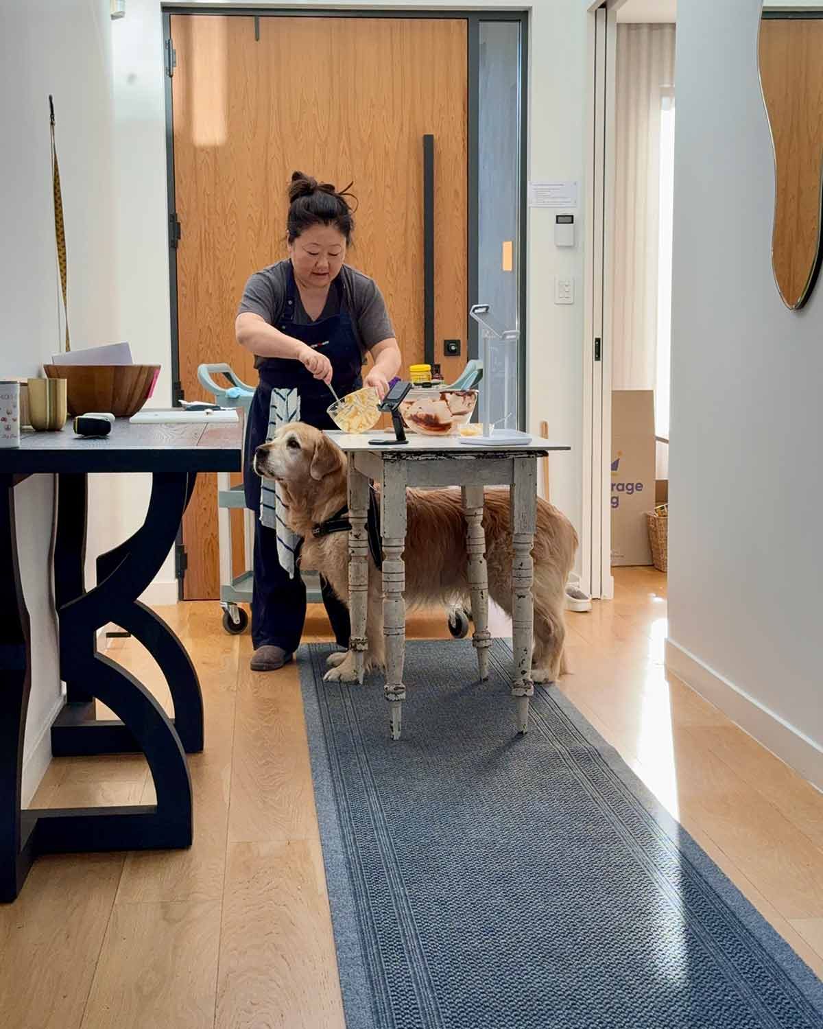 Got right into recipe filming the day after we moved in! Here we are filming an Instagram reel for Friday’s Peanut Butter Stuffed Brownies. If you’re wondering what on earth I’m doing making food in the hallway when there’s such a fabulous kitchen here – I’m chasing the light. 🙂