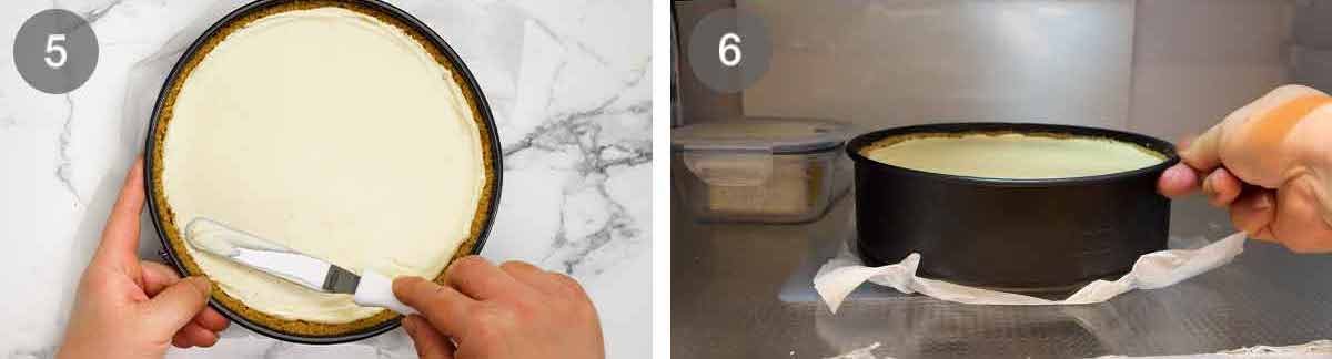 To make it easier to remove finished cheesecake, flip the base of the springform pan so itβs upside down. Why? Because this way you donβt need to worry about bumping the cheesecake over the lip of the base which could cause cracks in the crust. Instead, it will glide off smoothly!