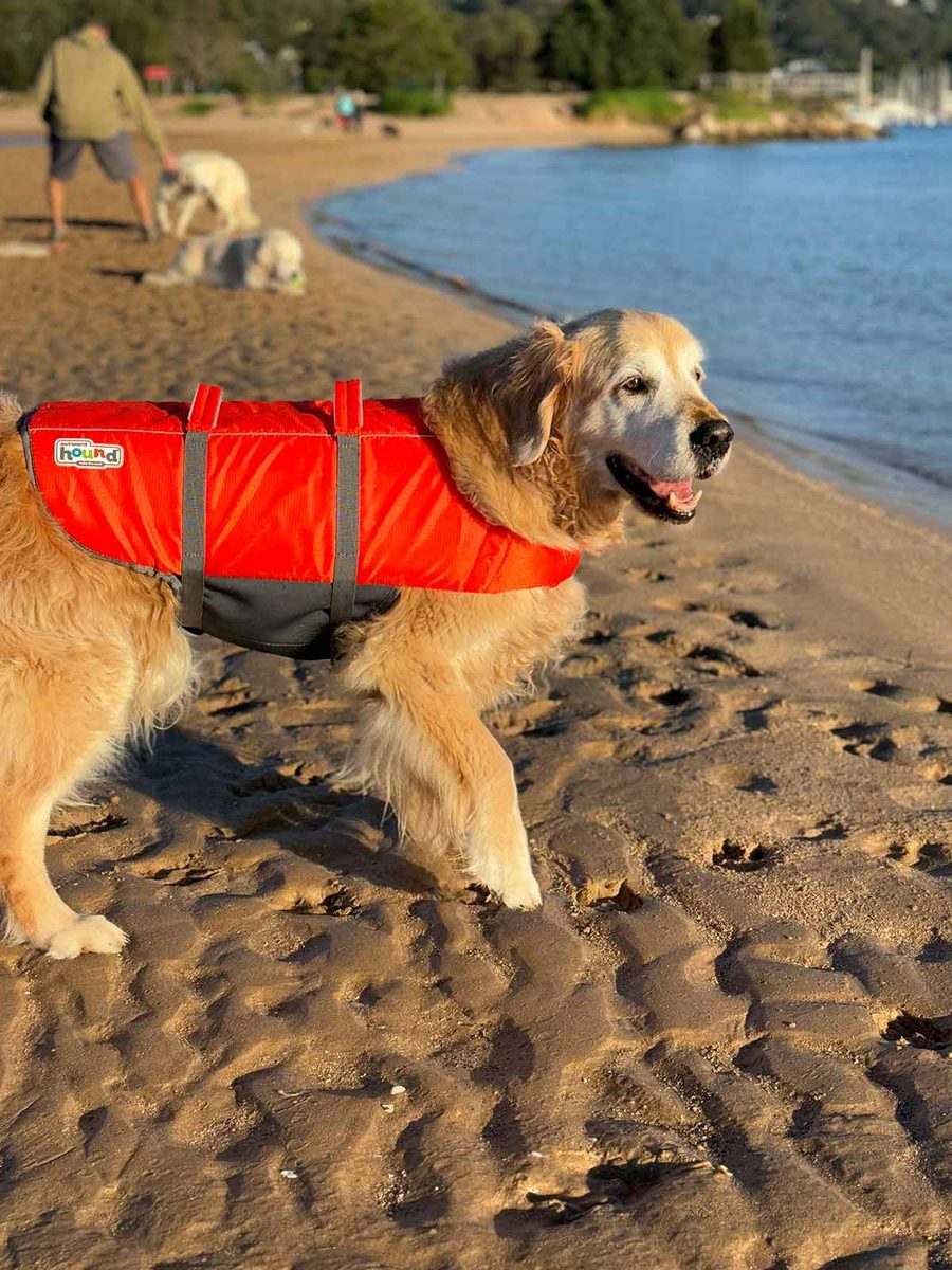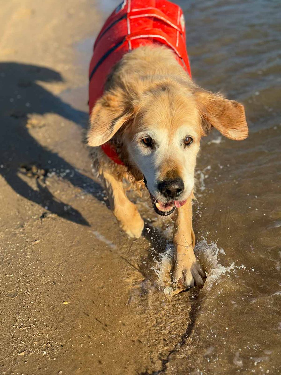 In Dozer news, I finally caved and got him a life jacket so he can swim safely!