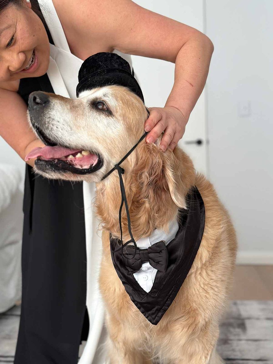 Getting fitted for a special reader dinner coming up next week at the Four Seasons hotel in Sydney! YES, Dozer will be waddling around a ballroom in his tux. 😂 There’s still some tickets available – see below for information!