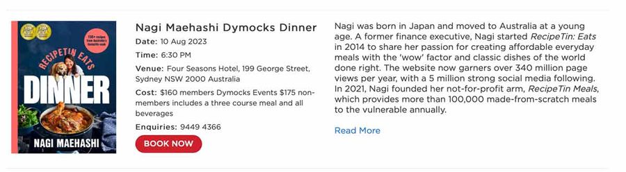 Tickets here for a dinner hosted by Dymocks book store at the Four Seasons Hotel in Sydney on Thursday 10th August. Ticket price includes a 3 course meal developed with the Chef at the hotel in collaboration with our very own Chef JB, as well as all beverages!